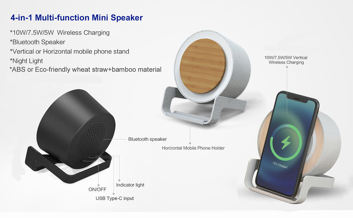 4 in 1 mini bluetooth speaker + wireless charger + night light + mobile stand