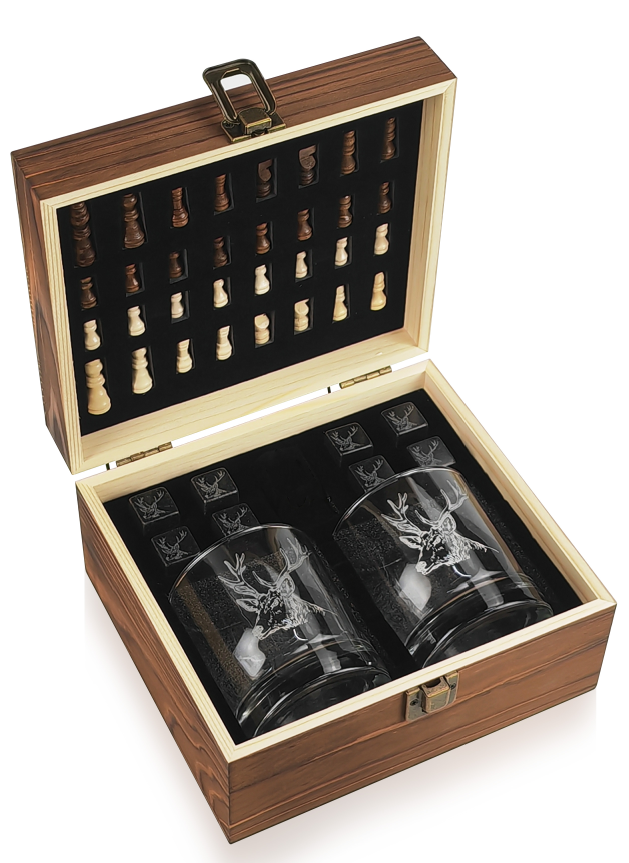 whisky set with chess kit