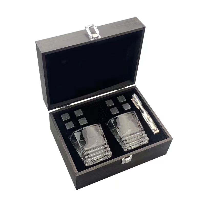 double whisky glass with 8 reusable rocks set